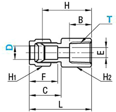 注: L と F は手で締めたときの寸法です。D 寸法 () の寸法はインチ単位です。