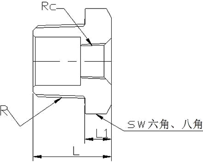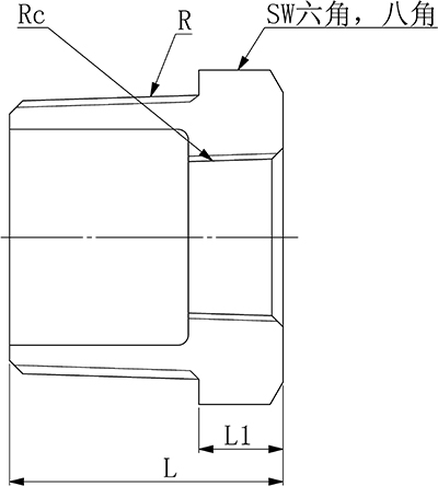 注: 外ねじの3/4 から始めて八角形です。